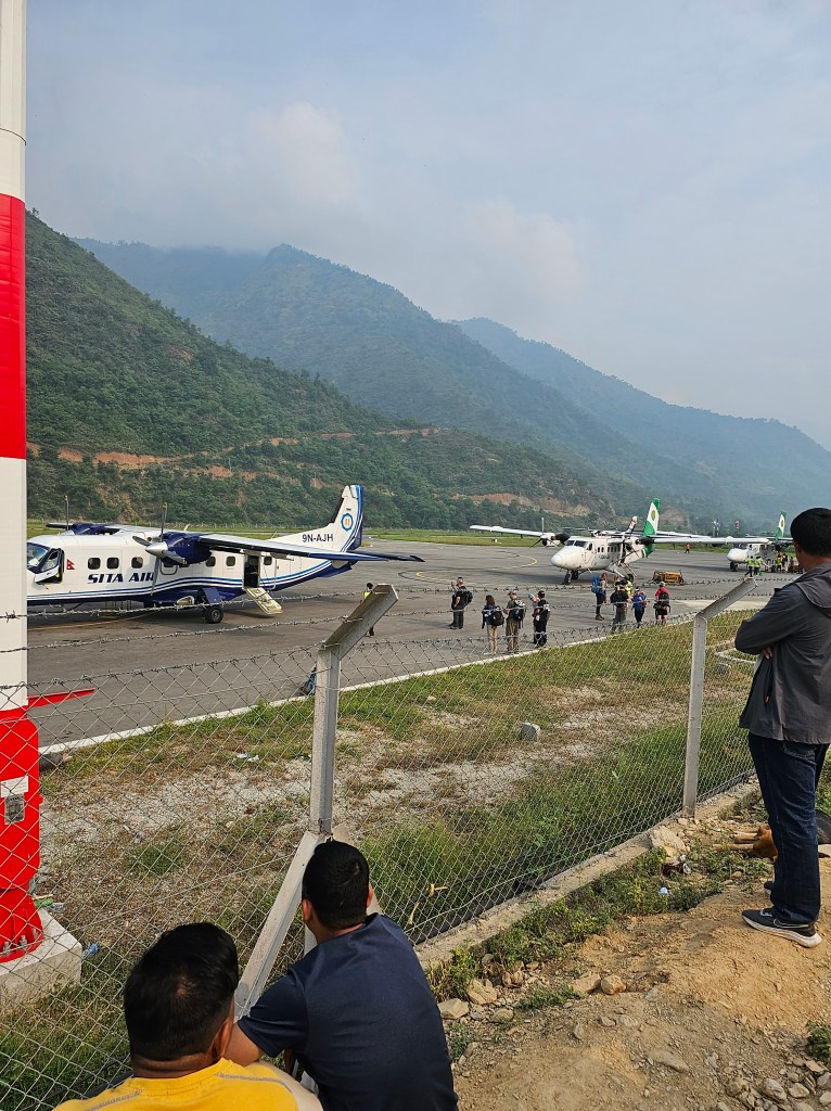 Ma anche qui, come era intuibile, il surrogato del mezzo aereo è stato preso d’assalto e i tempi si sono allungati tanto da vanificare la sveglia a Kathmandu ancora prima dell’alba, alle 4 del mattino. Il nostro gruppo, diviso in tre sottogruppi, ha la fortuna di sperare perché almeno uno dei tre raggiunge Lukla; poco dopo le 17, però, il comandante di rientro ci dice che non ci sono più le condizione, a causa delle forti raffiche di vento, per tornare a volare verso la porta dell’Himalaya. Ci rassegnamo sapendo di non poter far nulla se non goderci anche gli imprevisti. Namaste’.