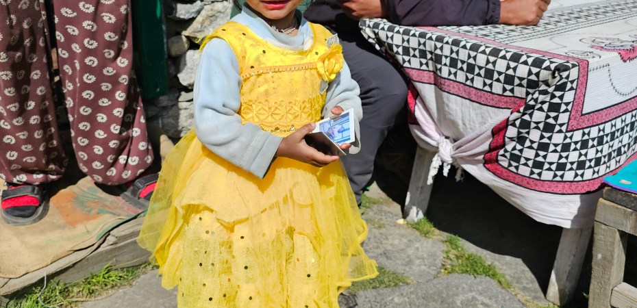 Oggi lungo il sentiero ho incrociato, in un conglomerato di case, che fungono da classica stazione di servizio per i viandanti, una donna all’ingresso, quasi a dare il benvenuto, intenta all’aperto su una sedia a fare la maglia ai ferri. “Namaste” o “You’re welcome” era il suo intercalare con tutte le persone che passavano. Un’altra bambina dispensava sorrisi con tutti indossando un vestito tradizionale, probabilmente orgogliosa, lungo il piccolo villaggio.