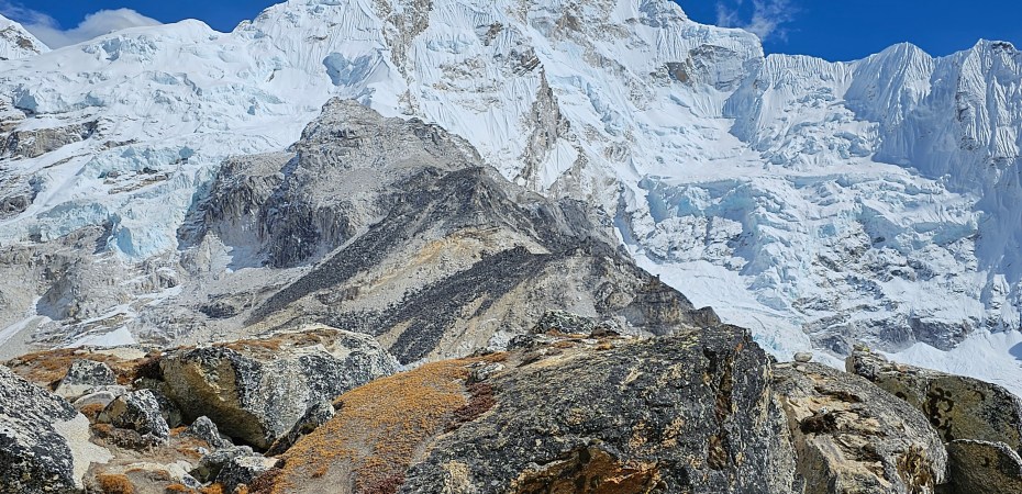 La microrespirazione, a queste quote, durante il sonno non basta così alcuni meccanismi fisiologici ti risvegliano per farti fare delle frequenti vere e proprie boccate d’aria. Quando sorge il sole sembra mi sia passato un treno sopra. Non ricordo nemmeno che destinazione avesse. Nonostante tutto partiamo. Oggi l’obiettivo è fare visita alla zona dei campi base dell’Everest e lo facciamo, con altri 600 metri di dislivello fatto a queste quote, ma non sono in forma e si vede. L’emozione è un po’ attutita dunque e il morale ne risente. Giornate come queste servono comunque a rimettermi i piedi per terra.